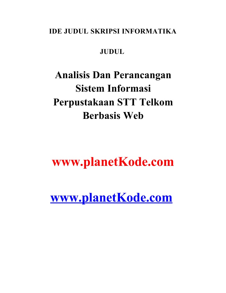 Contoh Daftar Judul Skripsi Teknik Informatikadoc. To Costumer dengan Teknologi M- Commerce berbasis WAP Perancangan Sistem Informasi Berbasis Web pada Perpustakaan Umum Daerah di Singaraja Sistem Aplikasi Try Out SPMB dan EBTANAS Berbasis Web Menggunakan PHP. Dalam tesis ini adalah dengan mengintegrasikan arsitektur antara digital library system dan library management system agar dapat mengadopsi masing masing keunggulan.