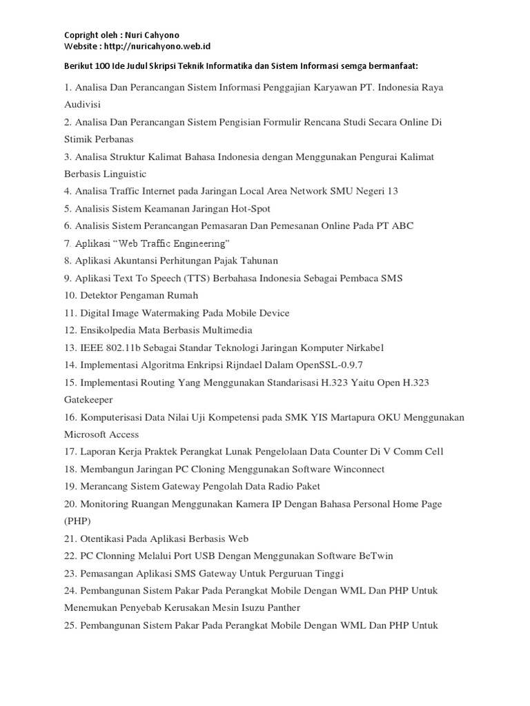 Contoh Daftar Judul Skripsi Teknik Informatika