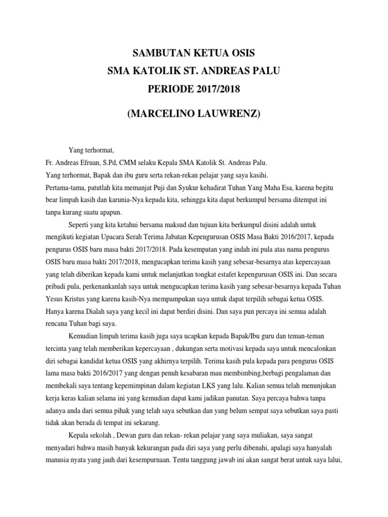 Semoga contoh tersebut bermanfaat bagi Bapak Ibu selaku kepala sekolah atau ketua panitia MPLS yang nanti akan membuka kegiatan tersebut di sekolah SMP maupun SMA-nya masing-masing. Cara Menguasai Podium saat berpidato Tekhnik Pidato. Jabatan osis mpk 12 13 13 14 sambutan ketua osis pada saat acara perpisahan oleh contoh kata sambutan rapat pertemuan ngebro com syarat dan tahapan pemilihan ketua osis kunciilmupengetahuan sman 2 sambas sekolah adiwiyata sambutan pidato ketua osis saat mopdb mukmin youth contoh pidato ketua osis dalam rangka perpisahan.