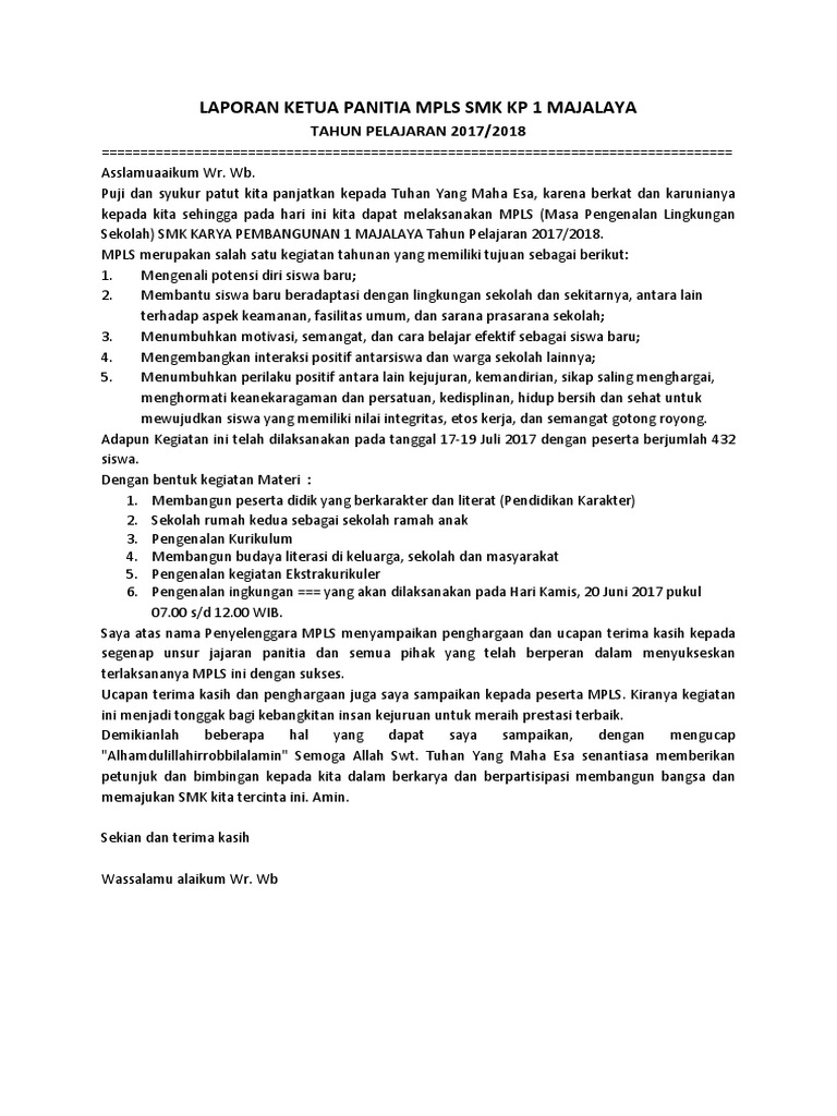Laporan ketua panitia mpls smk kp 1 majalaya. Laporan ketua panitia mpls smk kp 1 majalaya. Kata sambutan ketua panitia.