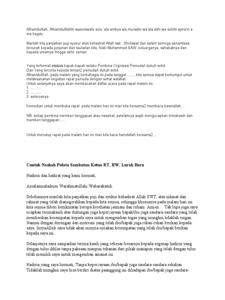 Contoh Teks Naskah Pidato Kata Pengantar Sambutan Ketua Rt Dalam Rapat Tipstriksib