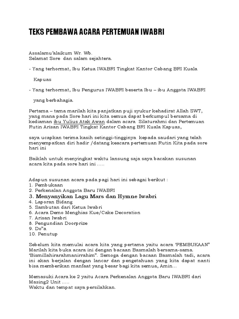 Teks Pembawa Acara Pertemuan Iwabri Pdf