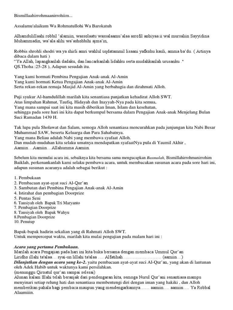 Doc Teks Mc Pengajian Rutin Shubuh Endra Kusuma Academia Edu