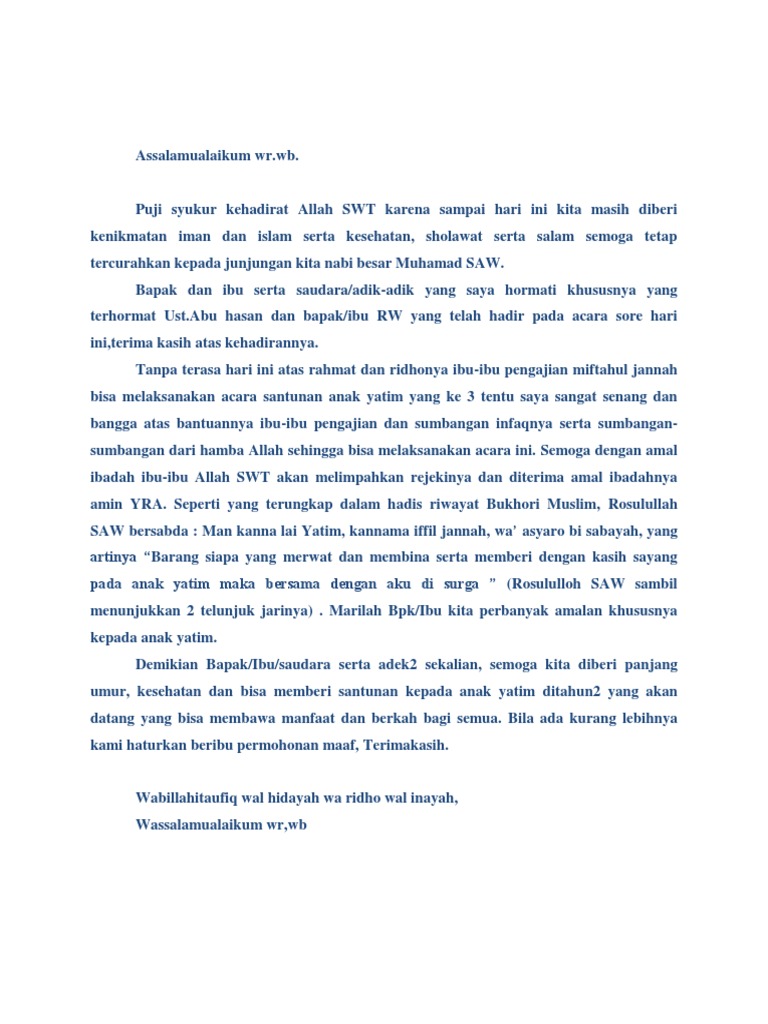 Dan hal tersebut memang pantas untuk dilakukan. Contoh teks mc santunan anak yatim.
