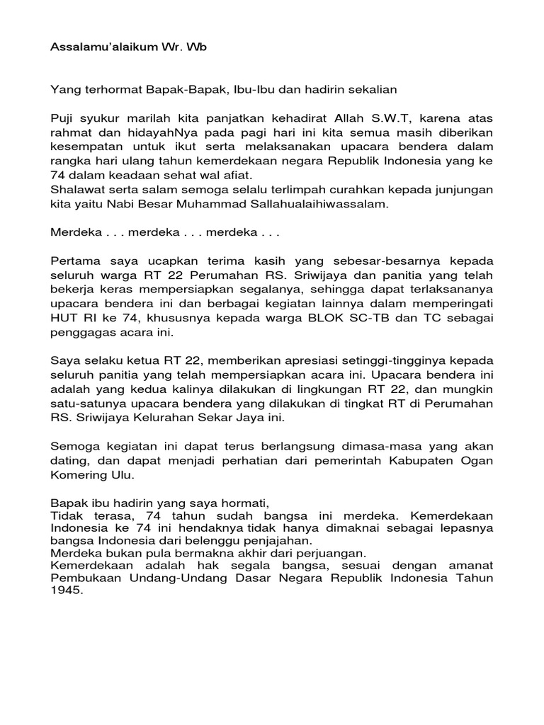 Contoh Sambutan Ketua Rt Acara Peringatan 17 Agustus Hut Ri Mas Roziq Blog