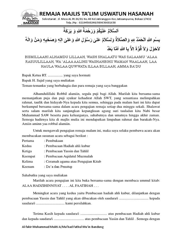 Contoh Teks Pembawa Acara Pengajian Pqn8moo11y41
