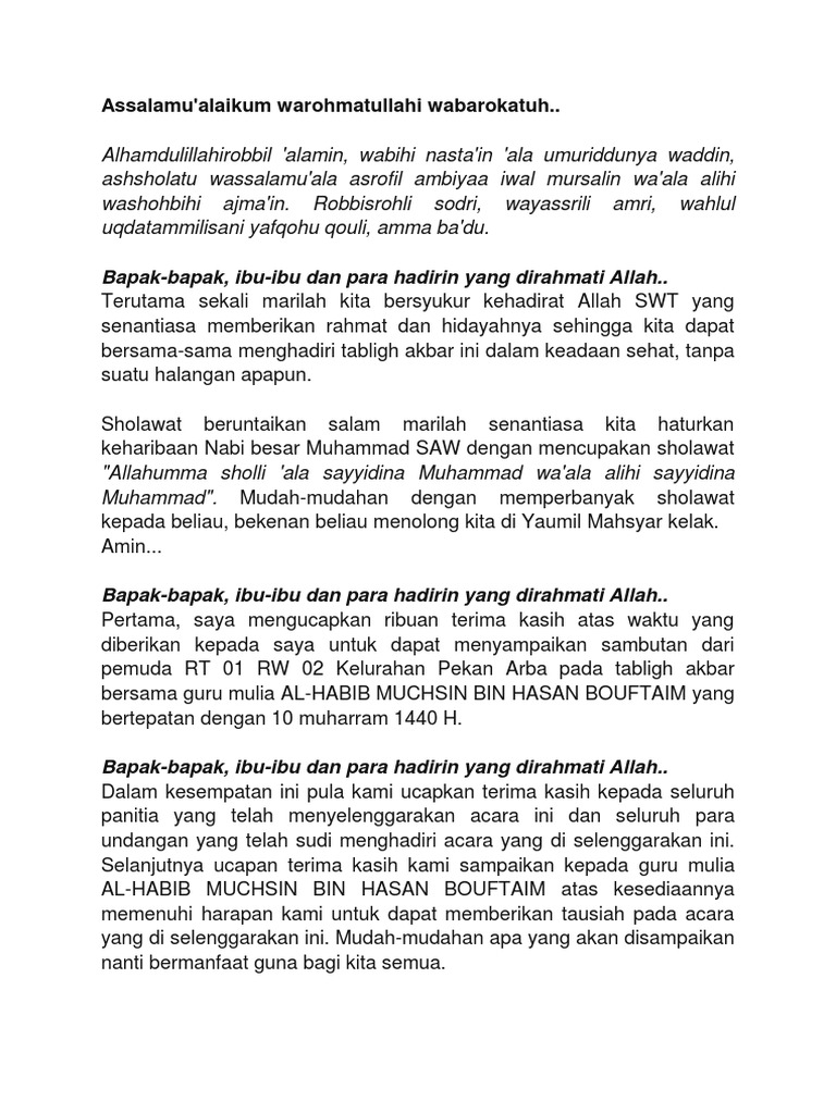 Contoh Contoh Kata Sambutan Ketua Panitia Tabligh Akbar