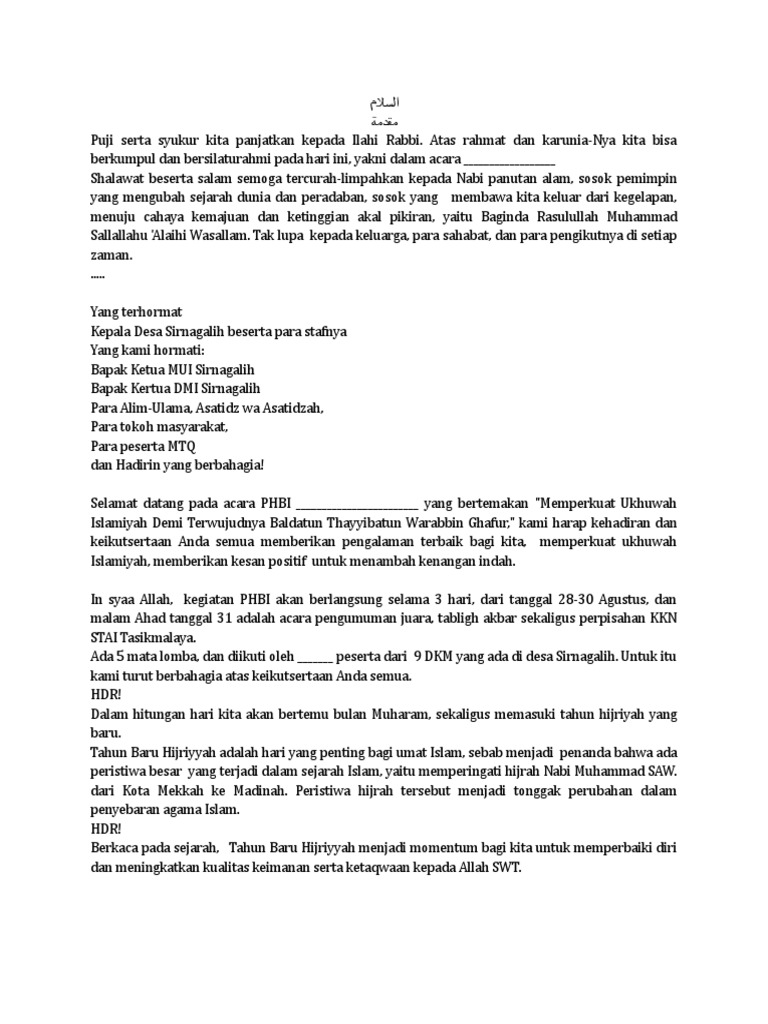 Sambutan Ketua Panitia Mtq Kkn Sirnagalih Pdf