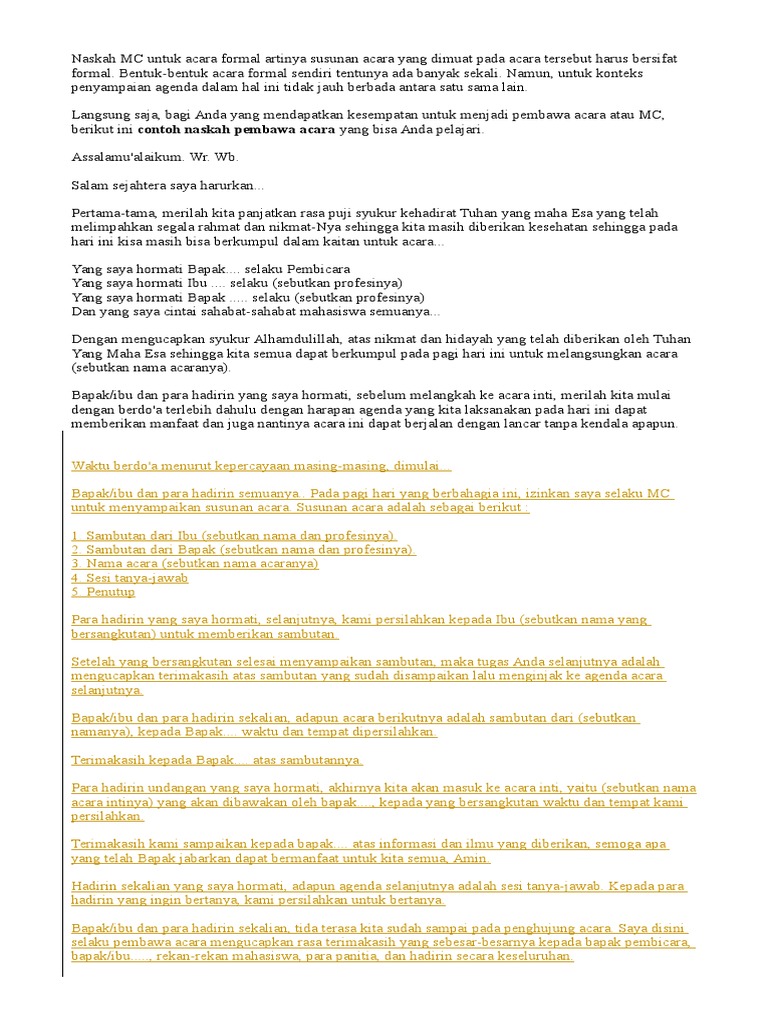 Contoh Teks Mc Singkat Untuk Acara Formal Dan Non Formal