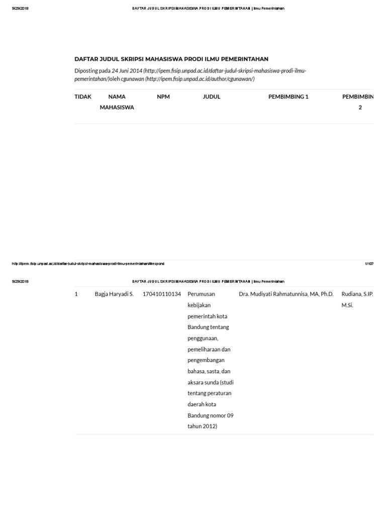 Daftar Judul Skripsi Mahasiswa Prodi Ilmu Pemerintahan Ilmu Pemerintahan
