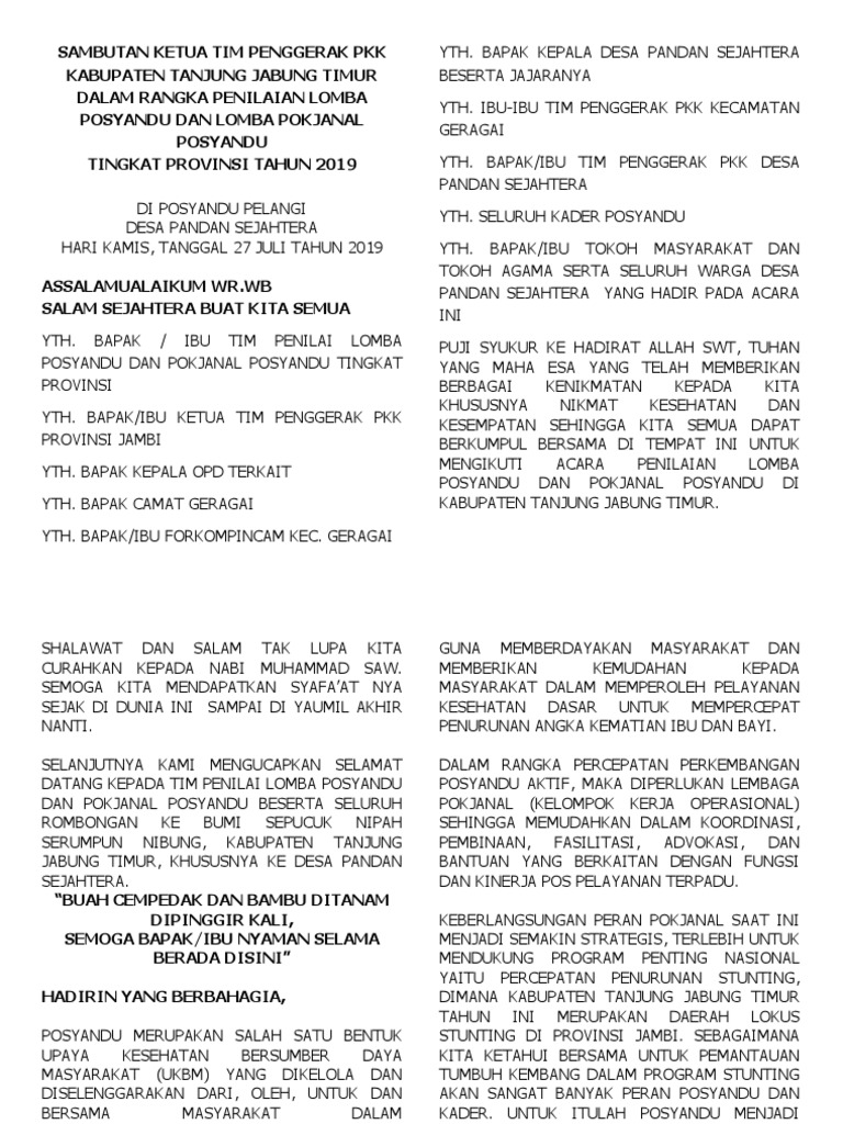 Sambutan Edit Ketua Pkk Lomba Posyandu