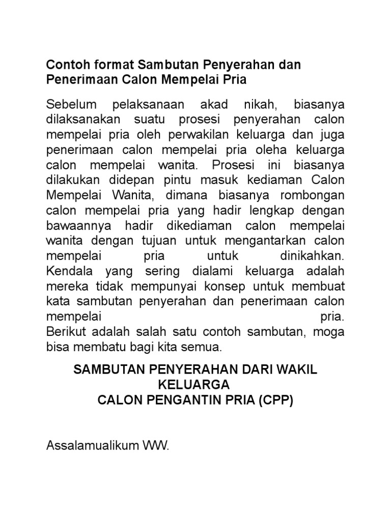Contoh Format Sambutan Penyerahan Dan Penerimaan Calon Mempelai Pria