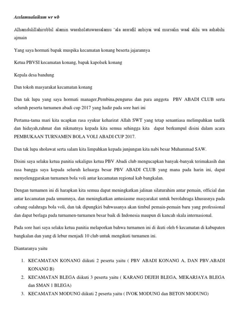 Admin blog Contoh Soal Terbaru 03 January 2019 juga mengumpulkan gambar-gambar lainnya terkait contoh kata sambutan ketua panitia lomba dibawah ini. Untuk membantu anda yang saat ini tengah kebingungan dalam menyiapkan naskah untuk pidato acara family gathering maka berikut ini kami memberikans alah satu contoh untuk kegiata tersebut. Bismillahir rahmanir Rahim Damai sejahtera bagi sodara dan ridho dan rahmat Allah Pak kades dan stafnya.
