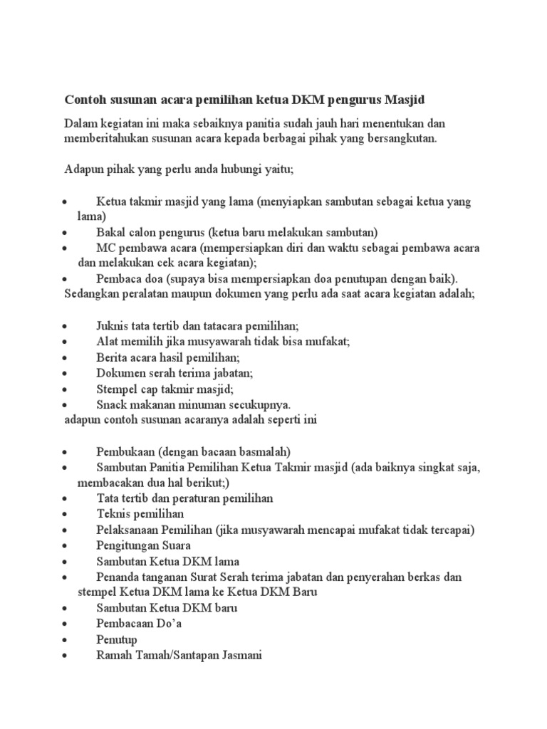 Contoh Susunan Acara Pemilihan Ketua Dkm Pengurus Masjid