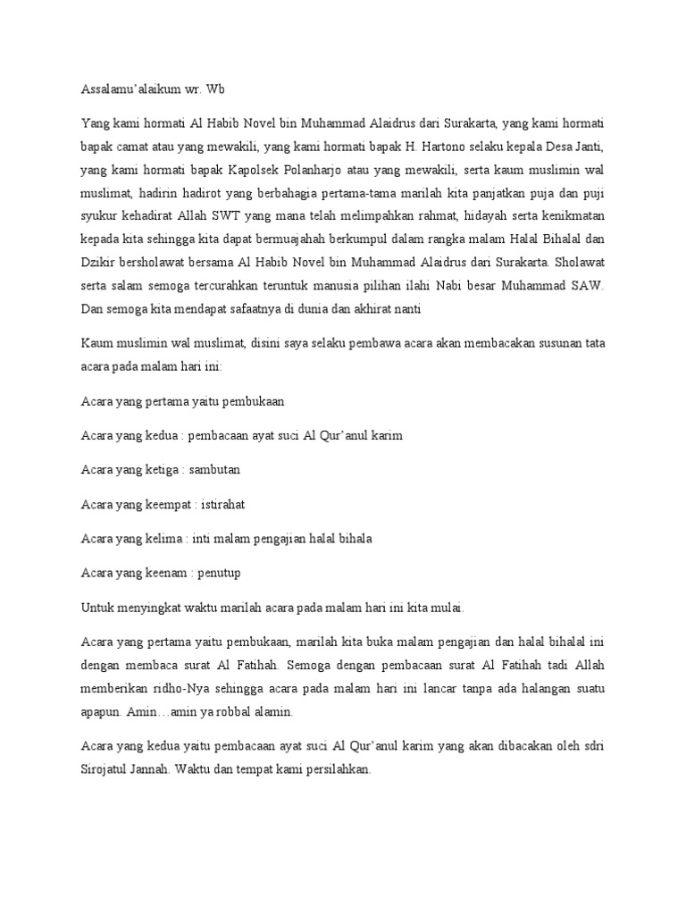 Doc Teks Mc Acara Halal Bihalal Riani Prihatiningsih Academia Edu