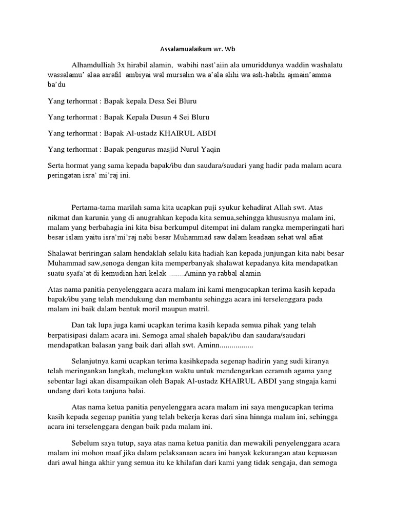 Contoh Kata Sambutan Singkat Ketua Panitia Isra Miraj Baik Bag Peringatan Isro Mi Roj 1429 H Desa Peniron Bumi Penironesia Peringati Isra Miraj Nabi Muhammad Saw Tp Pkk Desa Sepahat Gelar. Contoh Kata Sambutan Ketua Panitia Peringatan Hari Besar Islam. Pidato Bahasa Indonesia Isra Miraj Nabi Muhammad.