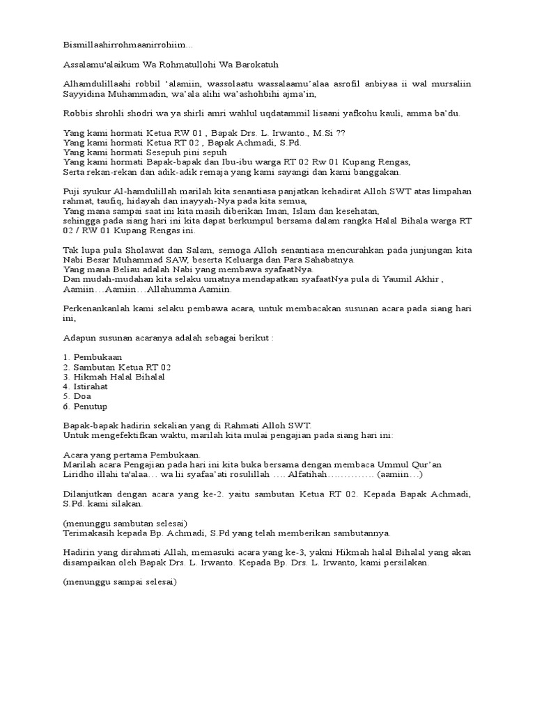 Doc Teks Mc Acara Halal Bihalal Riani Prihatiningsih Academia Edu