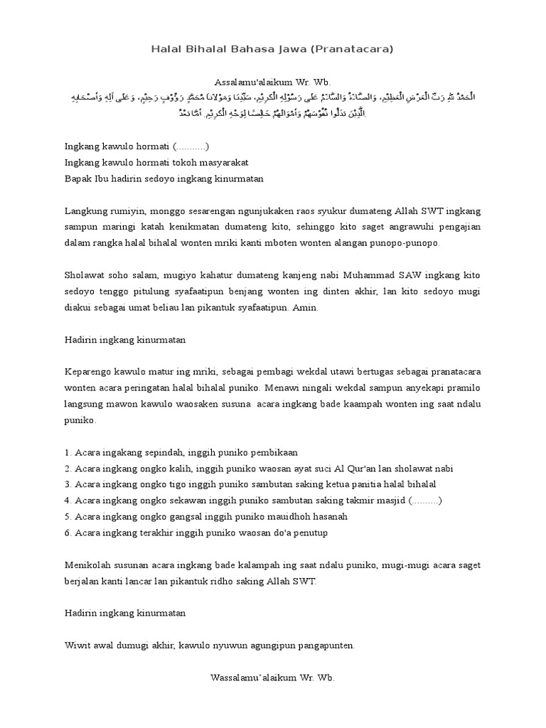 Contoh Teks Mc Halal Bihalal Bahasa Jawa Pranatacara Pdf